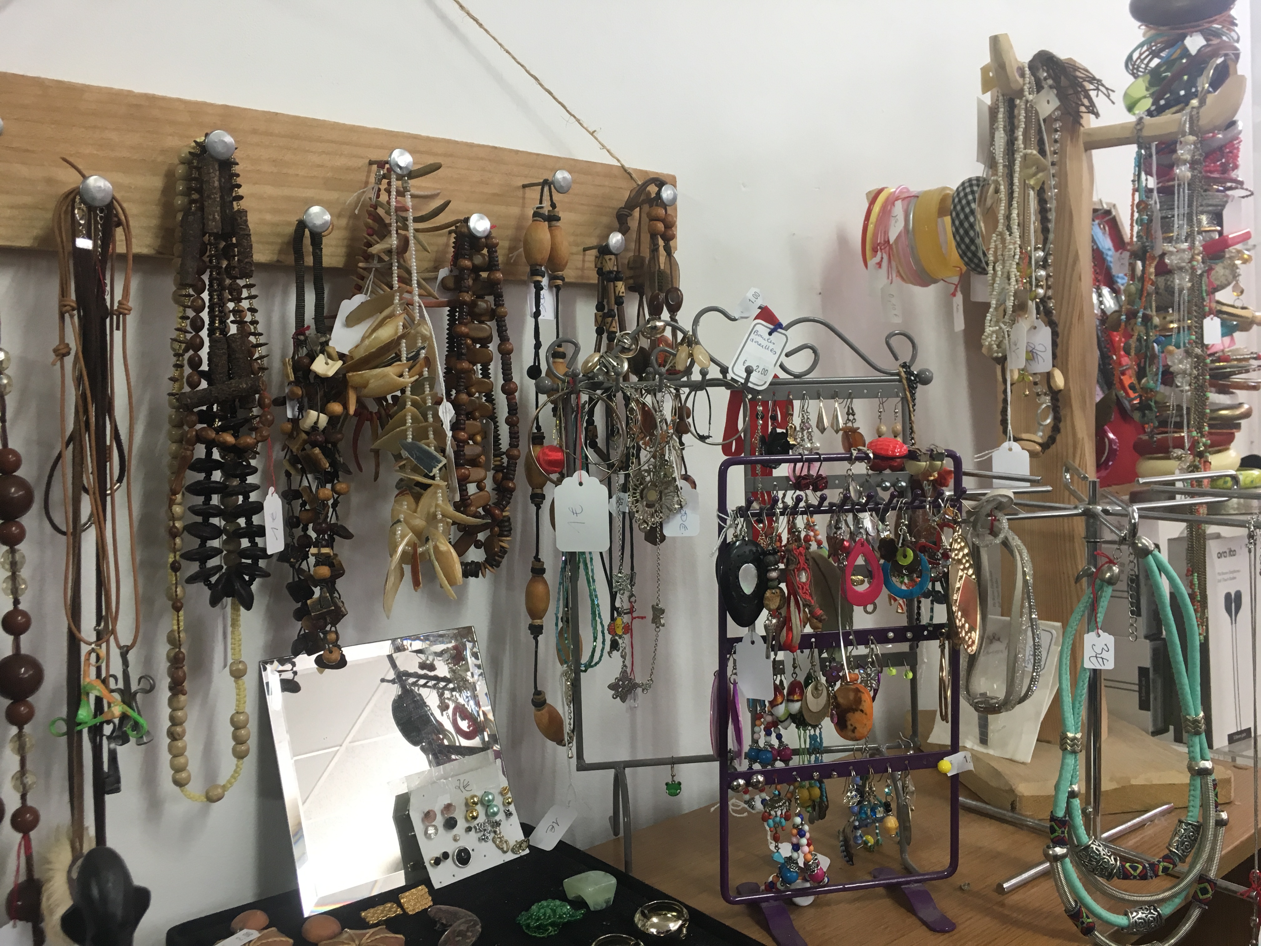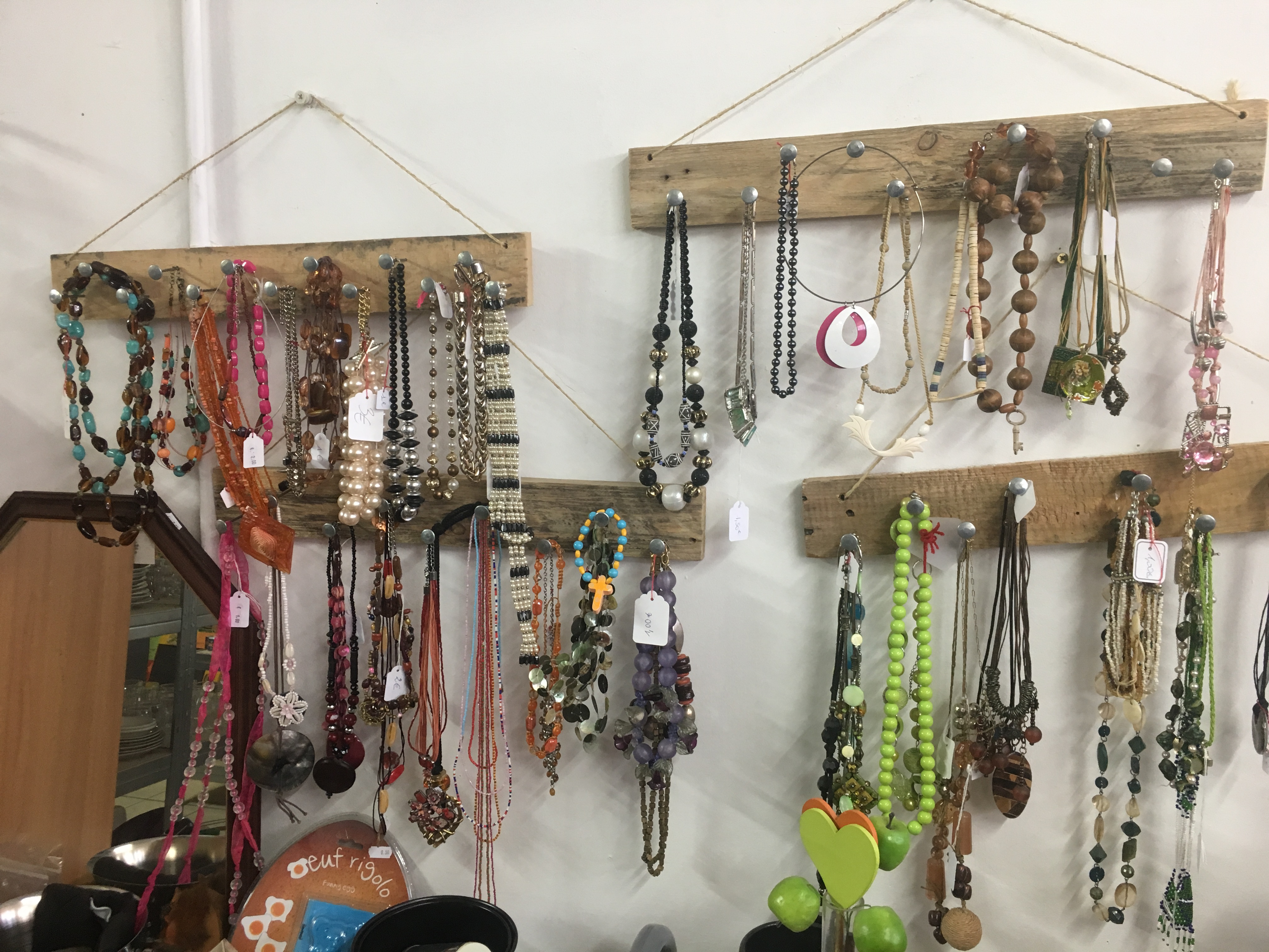 Nous avons 2 boutiques dédiées aux divers objets, bijoux, accessoires, vêtements, livres, CD, vinyles, meubles, créations… à des prix solidaires.